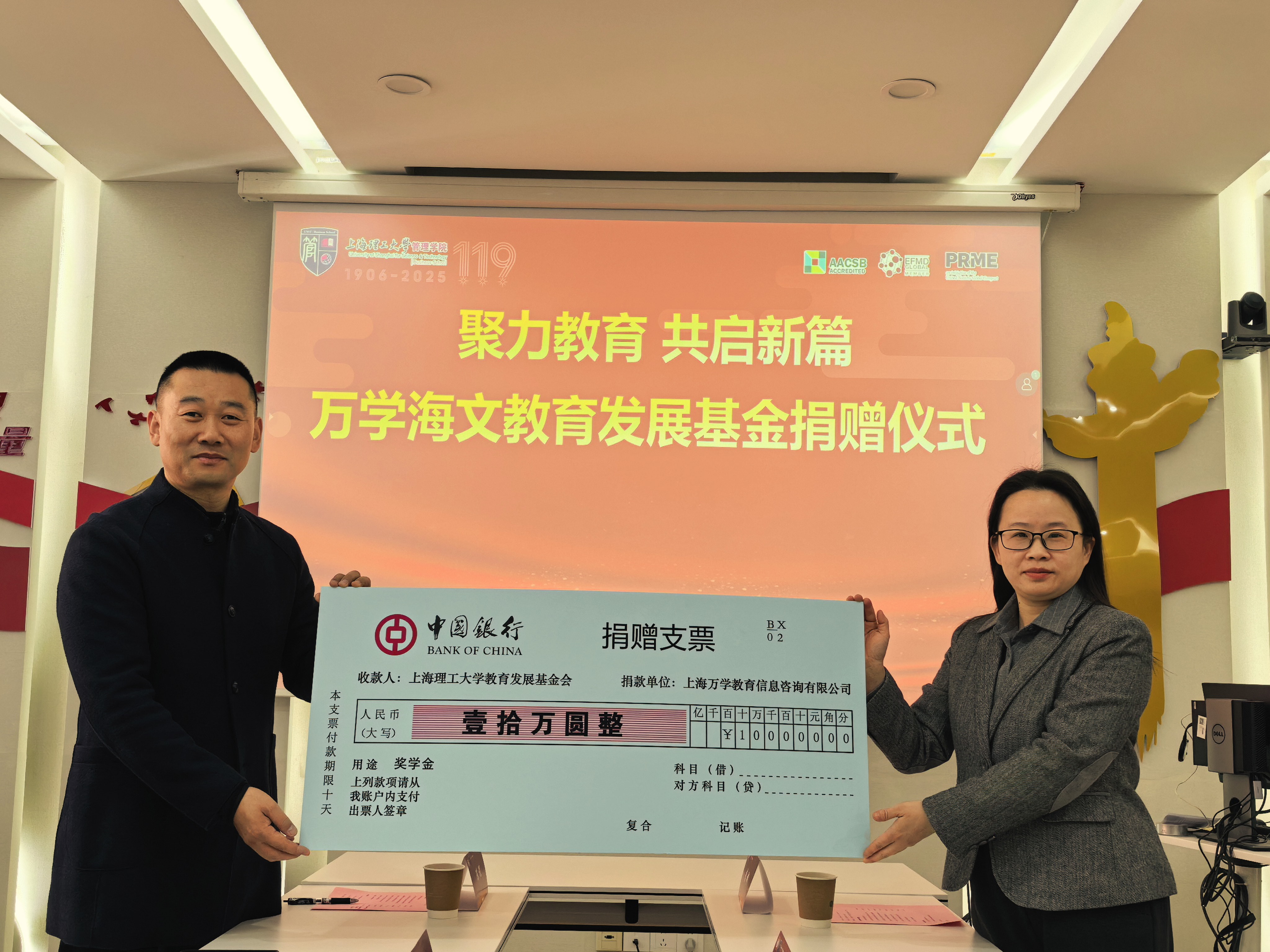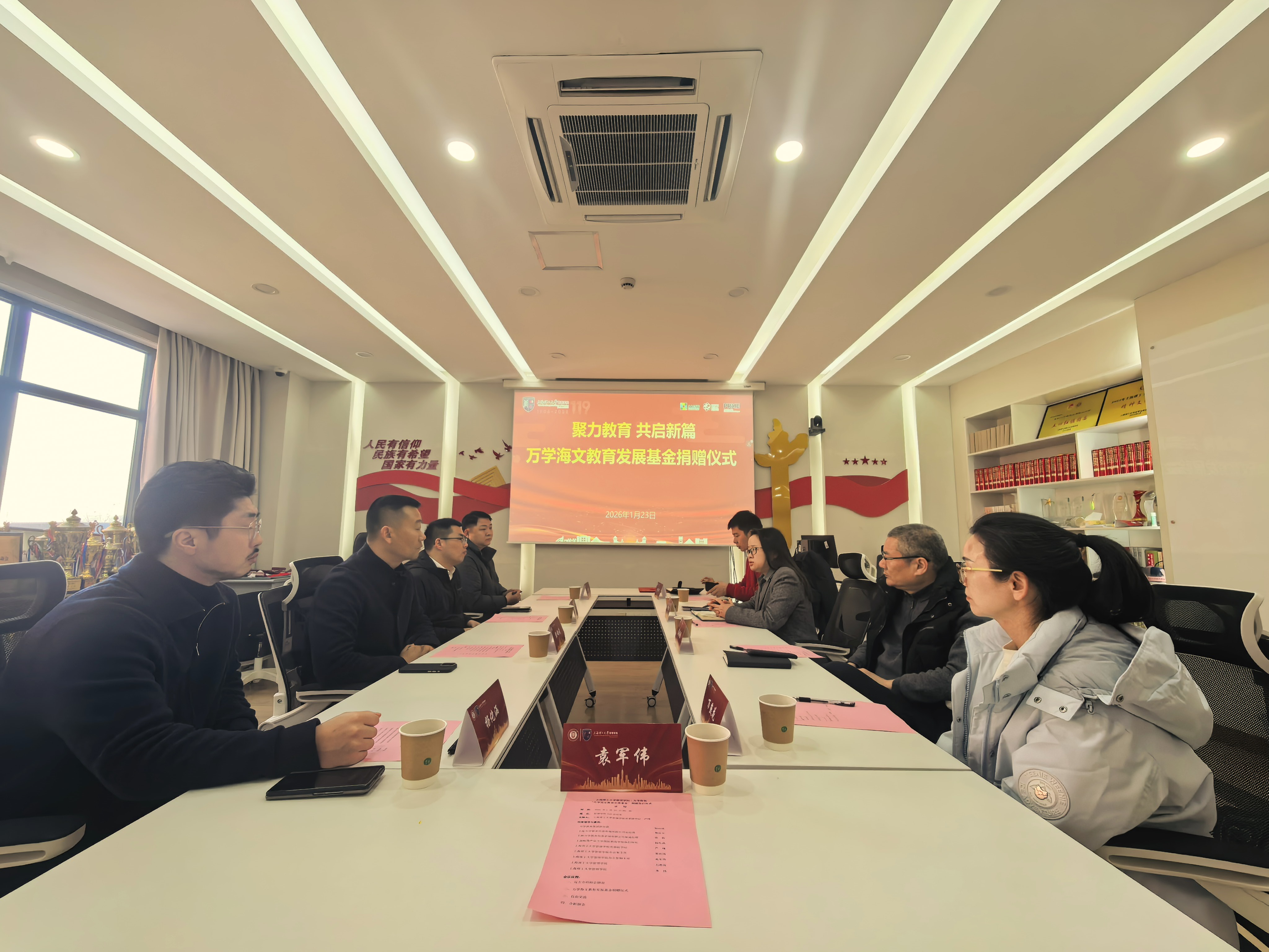 近日,上海理工大学管理学院与万学教育集团“万学海文教育发展基金”捐赠签约仪式在管理学院举行。仪式由上海理工大学管理学院党委副书记严瑾主持。上海临港产业大学国际教育学院执行院长杨仡涵作为特邀嘉宾出席仪式。